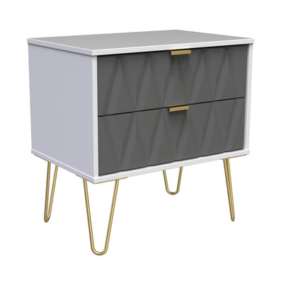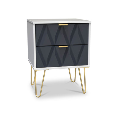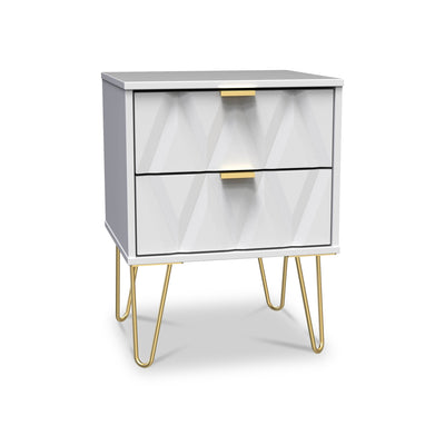 Geo 2 Drawer Bedside Table with Gold Hairpin Legs