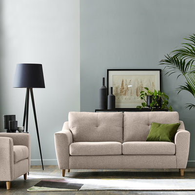 Justin - timeless, modern, durable. With chunky tapered arms, thick plush cushions and tall armrests fantastic for lounging, the Justin collection is available in three soft neutral tones.