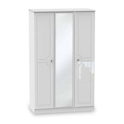 Kinsley White Gloss Triple Wardrobe with Mirror
