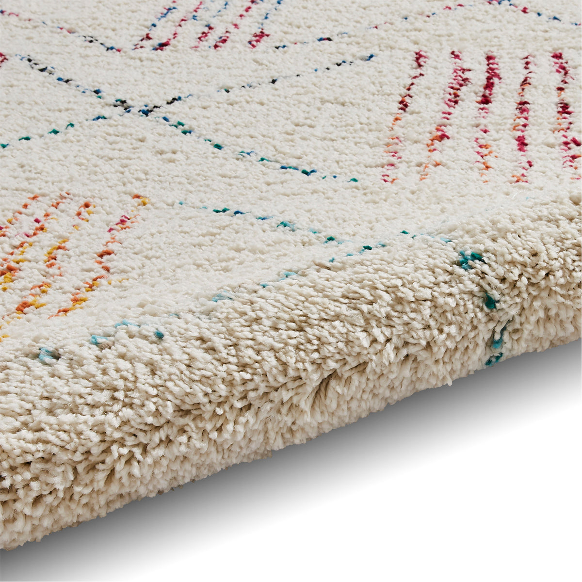 Elevate the style and comfort of your living room or bedroom with the Edie Boho Multicoloured Patterned Shaggy Rug. Inspired by the Moroccan Beni Ourain style, this high-quality rug features a shaggy pile that offers exceptional softness and comfort, creating a perfect space for relaxation and unwinding.