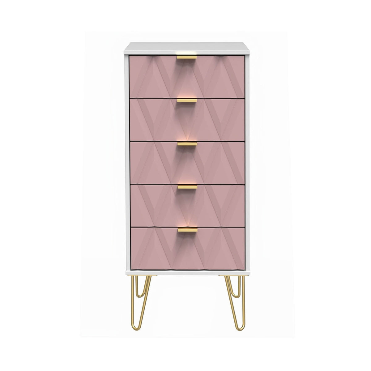Geo white and pink slim 5 drawer tallboy chest from roseland