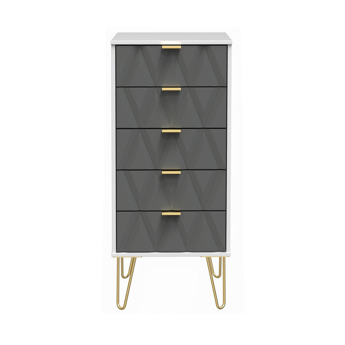 Geo white and grey contemporary slim 5 drawer tallboy chest