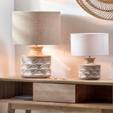 Kingsbury White Wash Large Carved Wood Table Lamp for living room or bedroom