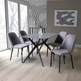 The stylish black powder-coated metal X-frame legs provide robust support and enhance the table's contemporary aesthetic, ensuring that it remains a focal point in your dining space.