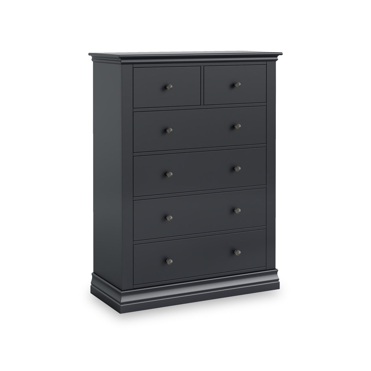 Each piece throughout this luxurious collection is styled with intricate rounded corniced crown tops and deep plinths combined with twisted spiral nickel handles, fusing traditional design features with contemporary craftsmanship.