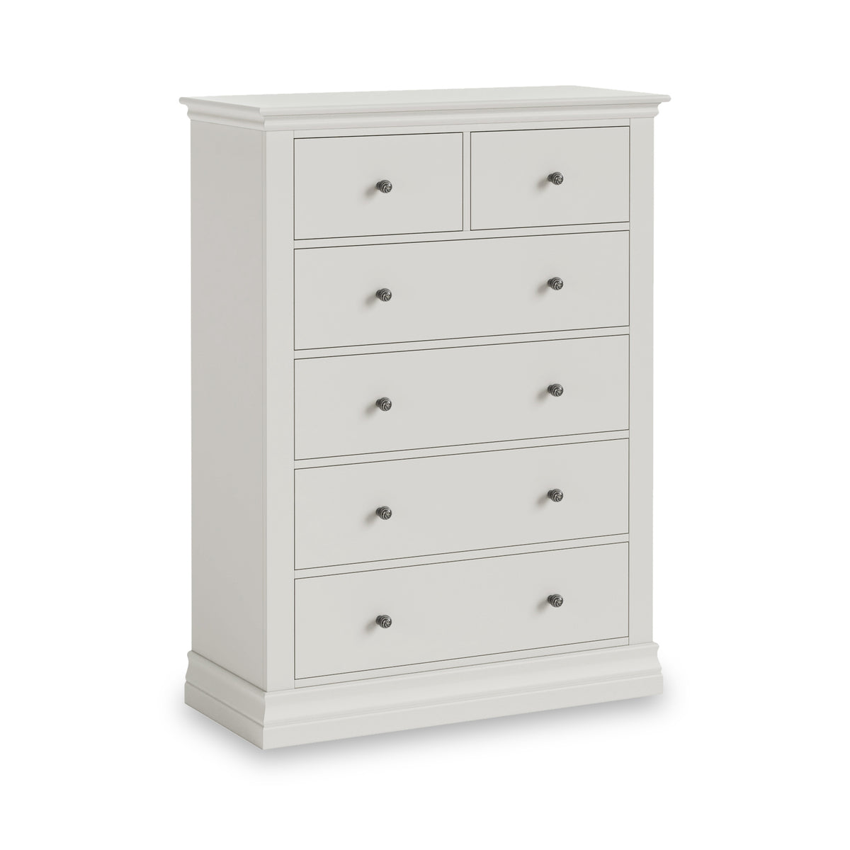 This tall 2 over 4 chest of drawers can brighten any room whilst creating a relaxing feel, perfect for a bedroom. The 6 drawers provide plenty of practical storage and the large top surface is ideal for displaying pictures, flowers, or even a vanity mirror.