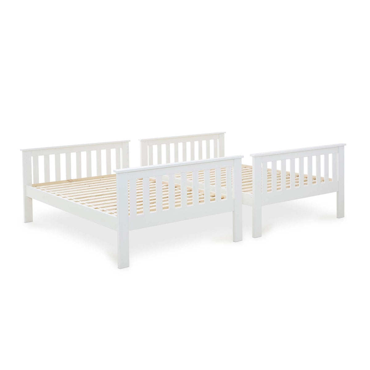 This versatile bunk bed can be easily detached into two separate small double beds and both feature solid slatted bases which provide extra support to the mattresses (sold separately).